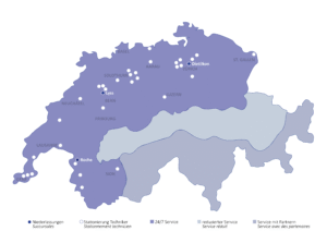 Aufgrund des grossen Technikerpools kann auf Unregelmässigkeiten und Ausfälle schnell reagiert werden. Für Notfälle steht ein 24-Stunden-Bereitschaftsdienst zu Verfügung.